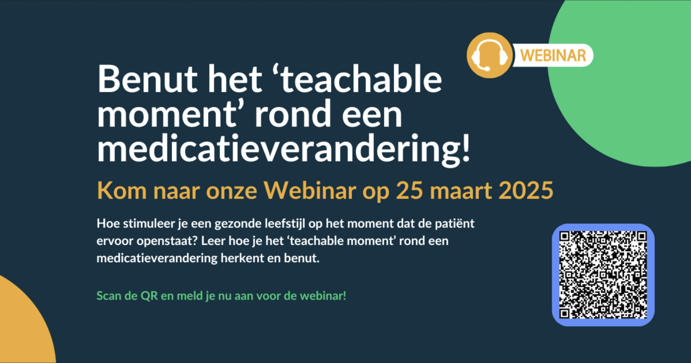 Rondom belangrijke momenten, zoals een nieuwe diagnose, bijwerkingen of medicatieverandering, voelen patiënten zich vaak kwetsbaar en stellen ze zichzelf de vraag: “Wat kan ik zelf doen?” Op zulke teachable moments staan patiënten meer open voor leefstijladvies en zijn ze gemotiveerd om gezond gedrag aan te nemen. Dit biedt een unieke kans om hen te stimuleren tot een gezondere leefstijl.
